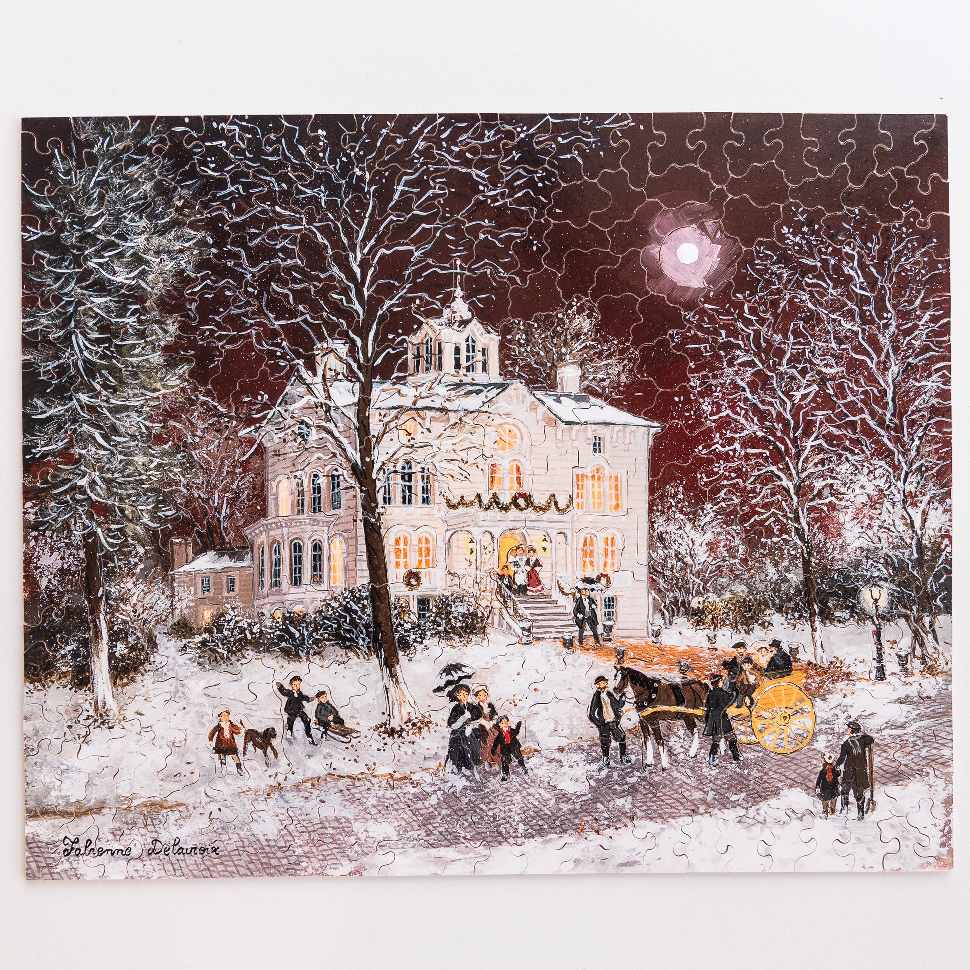 Be one of the few to have one of these limited edition wooden Christmas puzzles of the beloved historic Mayhurst Estate painted by the talented Fabiene Delacroix and hand crafted by Puzzle Michele Wilson. Build magical holiday memories every year as your family steps back in time to build this fine art, hand cut puzzle of this breathtaking Victorian American Estate.